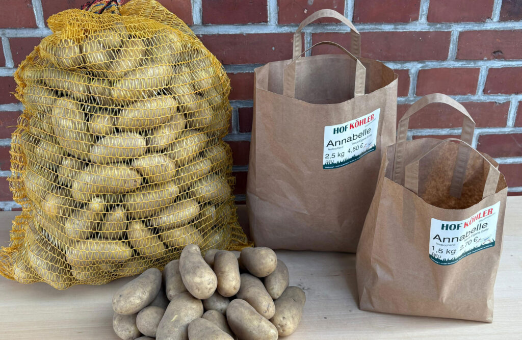 Bei uns findet Ihr für jedes Gericht eine passende Kartoffelsorte. Von mehlig bis festkochend ist alles dabei. Und sogar Pommes gelingen mit der richtigen Sorte hervorragend. Im Juni starten wir mit der frühen Sorte Annabelle, gefolgt von allen weiteren Sorten Anfang September: Belana, Allians, Laura, Talent, Linus.