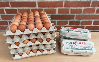 Unsere Legehennen leben in Freilandhaltung. Die Eier werden mit einer Sortiermaschine in die Größen S, M, L und XL sortiert, so dass frei gewählt werden kann, welches Ei man am liebsten mag.