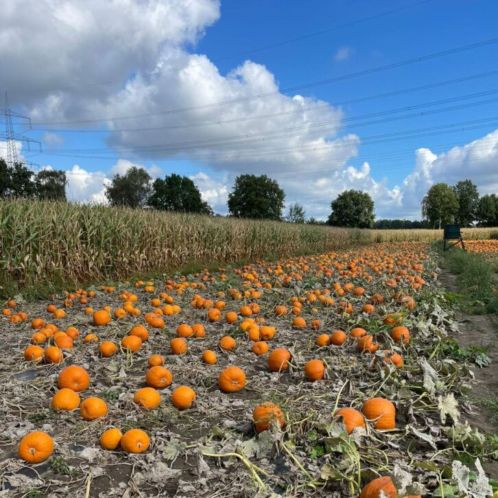 Auf weniger als einem Hektar wachsen unsere über 20 verschiedenen Speise-, Zier- und Schnitzkürbissorten. Sie bescheren uns von der Aussaat bis zur Ernte viel Handarbeit. Dennoch freuen wir uns jedes Jahr wieder auf die bunte Kürbisszeit.