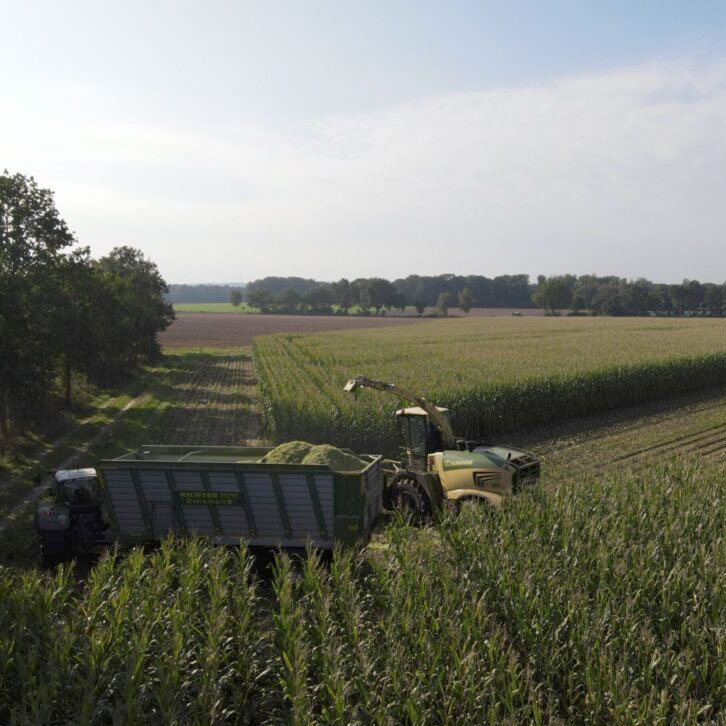 Der Silomais passt aufgrund seiner Wassereffizienz gut auf unsere leichten Sandböden und hat damit einen verlässlichen Platz in unserer Fruchtfolge. Genutzt wird er ebenfalls in unserer Biogasanlage zur Produktion von Gas, Strom und Wärme.